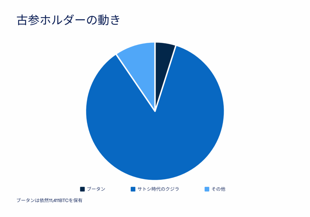 しかし、市場には常に逆風も存在します。ヒマラヤの王国ブータンは、この高値を利用して4日間で59.47百万ドル(約88億円)相当の512.84BTCを売却したと報じられました。それでも同国は1万1,411BTC(約14億ドル)という巨額のビットコインを保有し、水力発電を利用したクリーンなマイニング事業を続けています。また、ビットコイン創世記に資産を蓄えた「サトシ時代のクジラ」と呼ばれる古参投資家が9,000BTC(約10億5,000万ドル)を売却したことも明らかになっています。大量の売りが出れば価格調整を引き起こす可能性があり、市場は古参ホルダーの動向に注目しています。