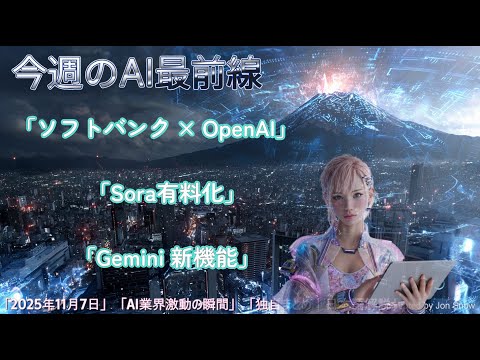 主なトピックはソフトバンクとOpenAIによる法人向けAI事業新設、動画生成AI「Sora」の有料化と収益分配、そしてGeminiの新機能「Canvas」など。