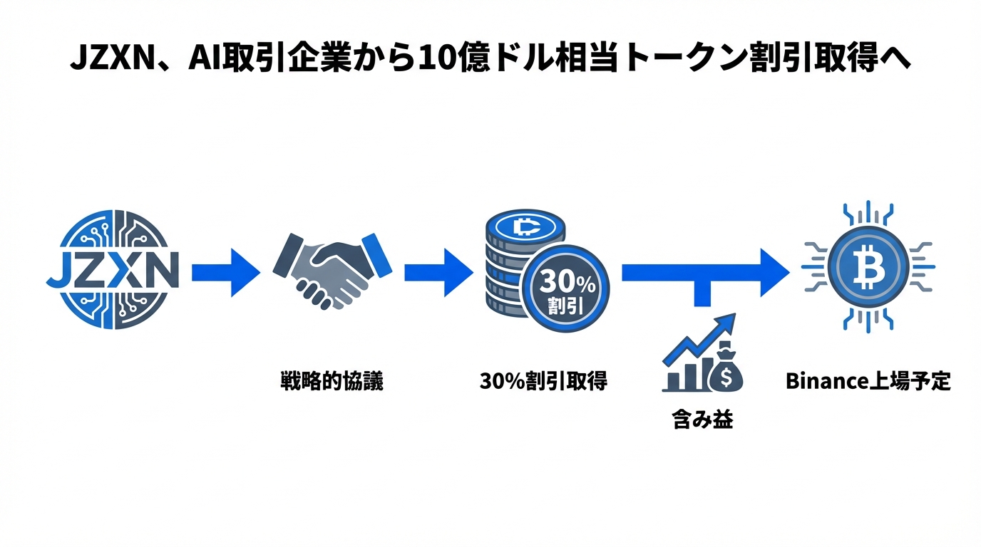 仮想通貨情報局 ニュース $10億のトークンが30%割引で動く!?JZXNがAIトレード企業と大規模な取得協議中。Binance上場予定で、市場が大きく変わる可能性と潜在的なブックゲインのチャンスを解説します。#JZXN #AIトレーディング #仮想通貨
