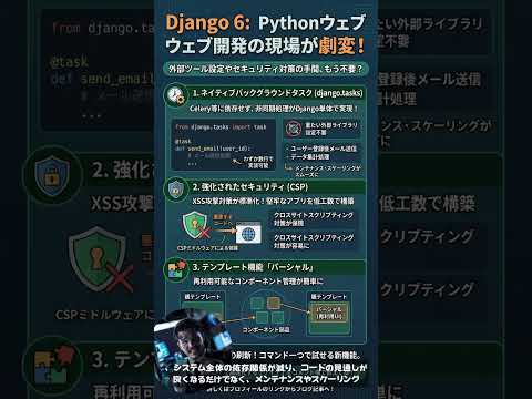 AIクリエーターの道 ニュース Django 6の登場で開発効率が劇的に変わります!新機能を実装しPythonウェブ開発の即戦力スキルを身につけよう。#Django6 #Python開発 #ウェブフレームワーク