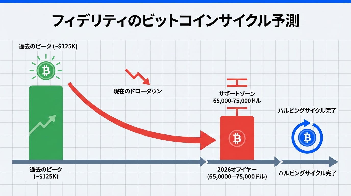 まとめると、Fidelityの分析はビットコインの4年サイクルが2026年に「オフイヤー」をもたらす可能性を指摘。価格が65kドルサポートまで落ち込むかもだけど、これはチャンスの裏返し。仕組み理解して、リスク管理を。DYOR(Do Your Own Research)大事! 自分で調べて判断しようね。