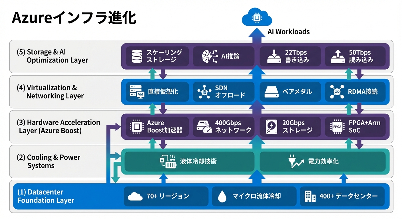 ここでは、Azureインフラの次なる進化を技術的に深掘りします。冷却革新、ベアメタルサーバー、ストレージの改善を中心に、仕組みと制約を解説します。まず、概要イメージをご覧ください。