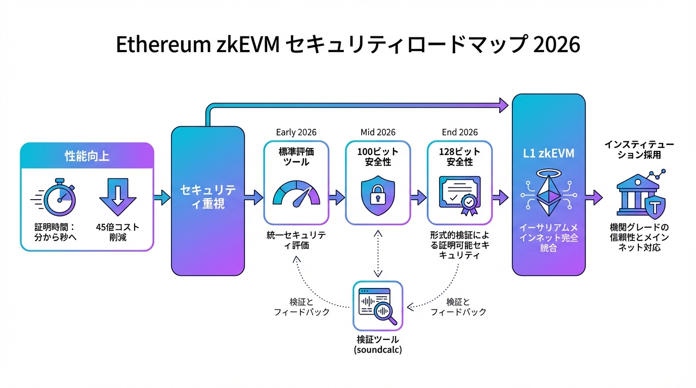 Ethereum FoundationのzkEVMロードマップは、性能向上からセキュリティ優先へのシフトを示し、Web3の成熟を象徴します。