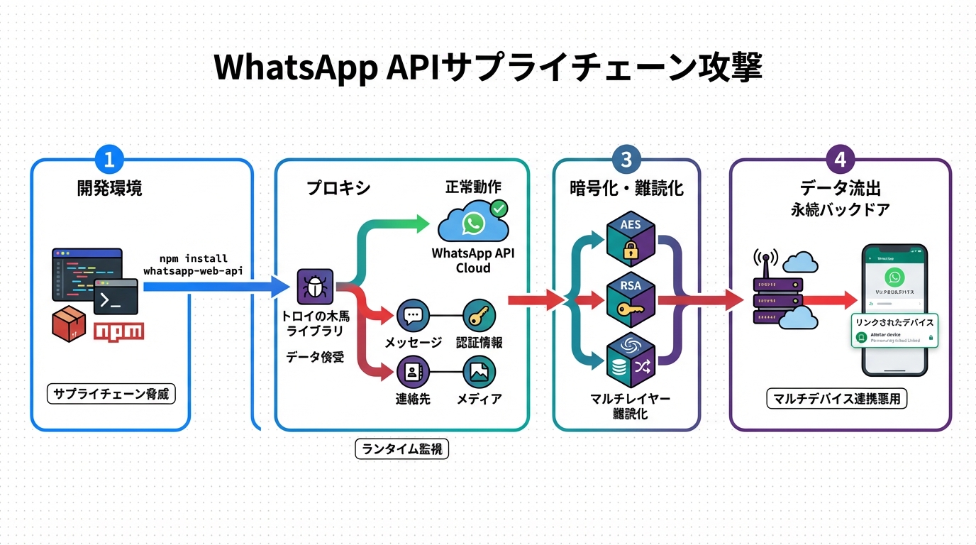 👋 技術者の皆さん、NPMパッケージの依存関係がもたらすリスクを再考する時が来ました。この記事では、WhatsApp APIを偽装したマルウェアがどのように機能的に動作しつつデータを盗み出すかを、技術的深層から解剖します。