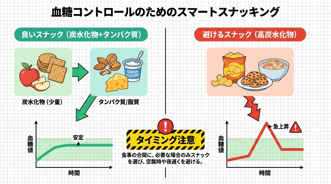 - 隠れた糖分を避け、低GIスナックを選ぼう!(例: ナッツやチーズ)