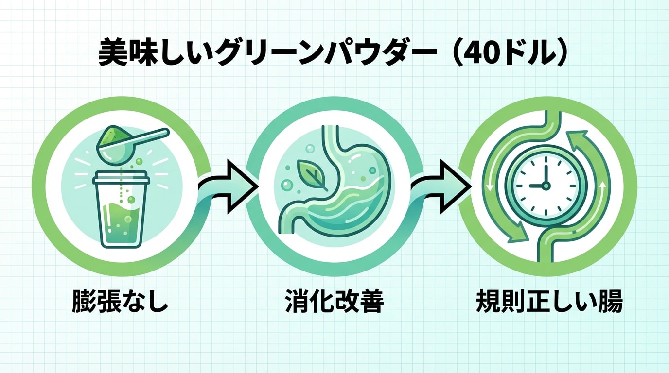 そんな中、グリーンズパウダーが救世主になる。でも、課題は山積み。高価なもの(例: $90クラス)はお財布を痛めるし、味が「泥水みたい」で続けられない。しかも、飲んだ後でお腹がぽっこり張る人多数。僕も一度、某有名グリーンズで「風船みたいに膨張」して、ジョークじゃなく辛かったよ。