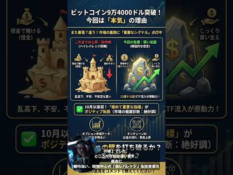 投機かと思いきや今回は違うかもしれません。ビットコインが9万4000ドルを超えましたがETF流入など土台がしっかりしている印象です。借金頼みではないこの上昇が本物なのか慎重に見守りたいですね。#ビットコイン #仮想通貨