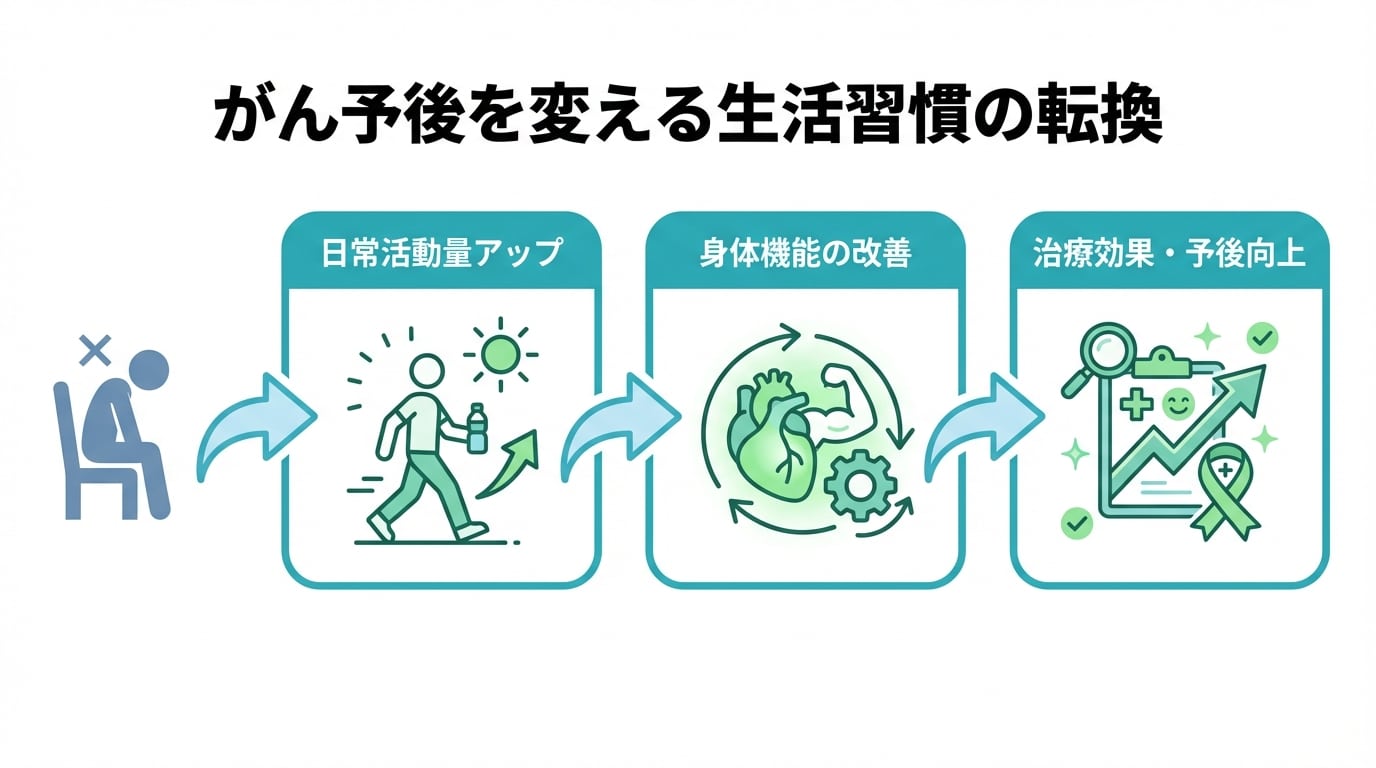 効果は研究段階で、不確実性あり。個人差や癌の種類による。過度な運動は逆効果のリスクも。法的には、医療行為じゃないので自己責任。医師の指導を必ず受けてください。2025年11月30日執筆時点の情報です。