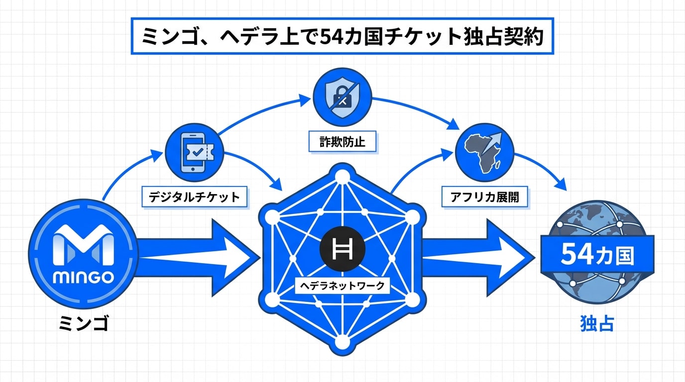 - ✅ Mingoの新プラットフォームが、Hederaのブロックチェーンで54カ国をカバーし、チケット詐欺を防ぐ革新的システムを導入。