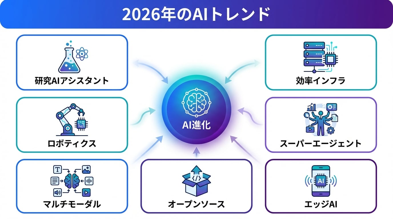 みなさん、AIのニュースを見ても「専門用語ばっかりで、何がすごいのかわからない」って思うこと、ありませんか? 私も最初はそうでした。例えば、毎日のように「AIが革命を起こす!」みたいな話が出てくるけど、結局自分の生活にどう関係するの? って感じですよね。仕事で忙しい会社員さんや、勉強中の学生さんにとって、AIは遠い世界の話に聞こえがち。でも、実は2026年のAIトレンドは、私たちの日常をガラッと変えるものばかりなんです。今日は、そんな最新のAIの動きを、まるで友達に話すみたいに簡単に説明します。専門用語は一切なし! 例え話でスッキリ理解しましょう。