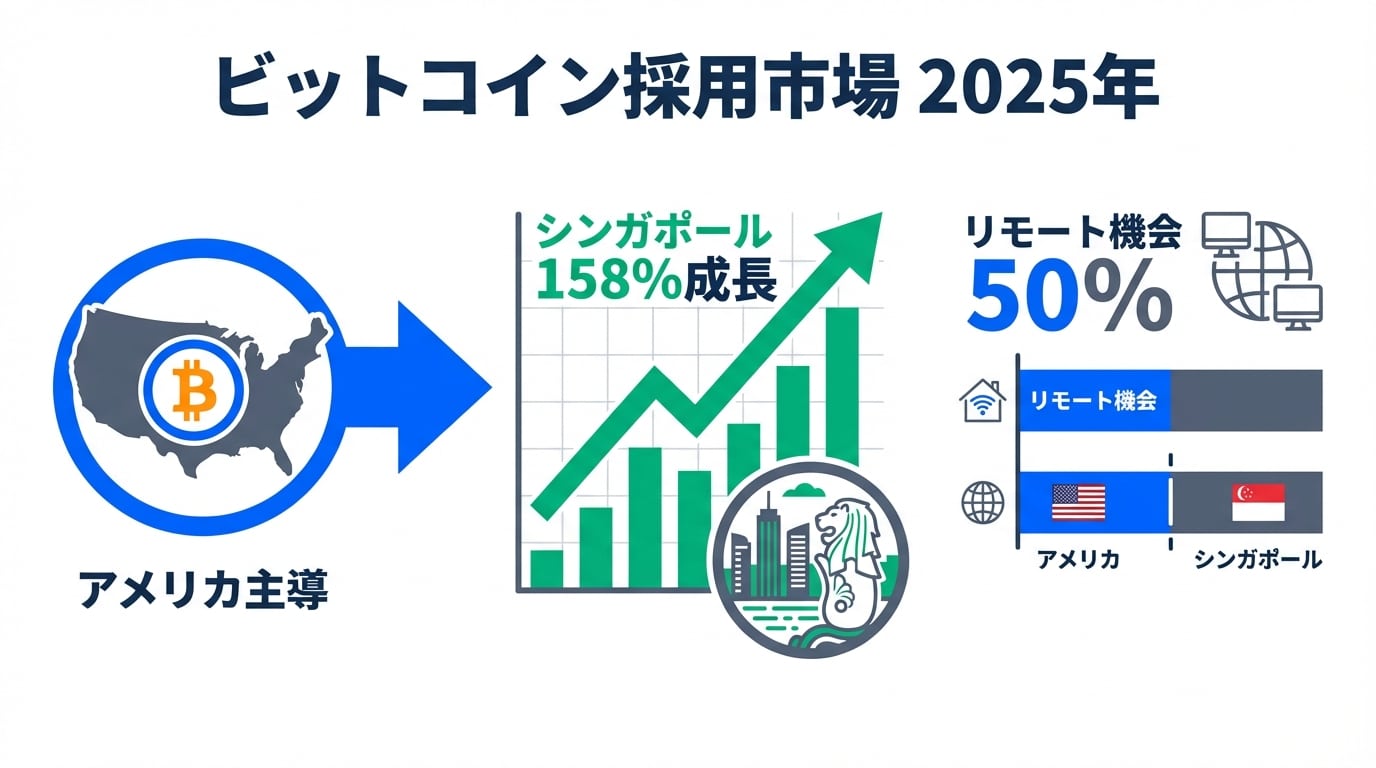 • 米国がビットコイン求人市場のトップ、全体の半分近くを占める