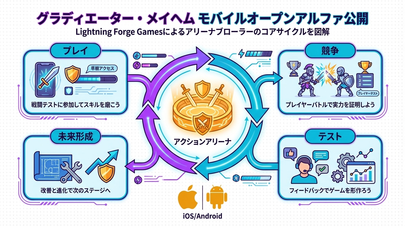 - 今回のニュース元記事:Gladiator Mayhem Enters Open Alpha on Mobile: Lightning Forge Games Brings Fast-Paced Arena Combat to iOS and Android